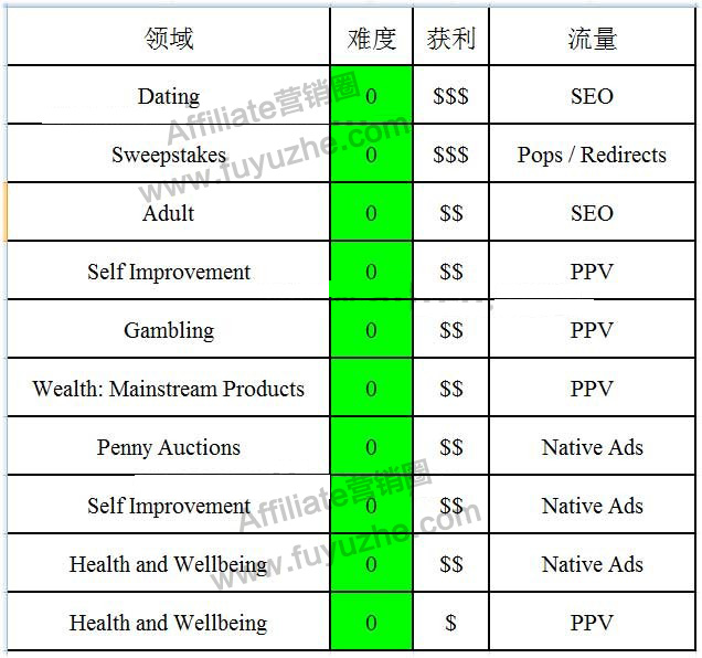 那么看下表,affiliate marketing获利丰厚的领域offer