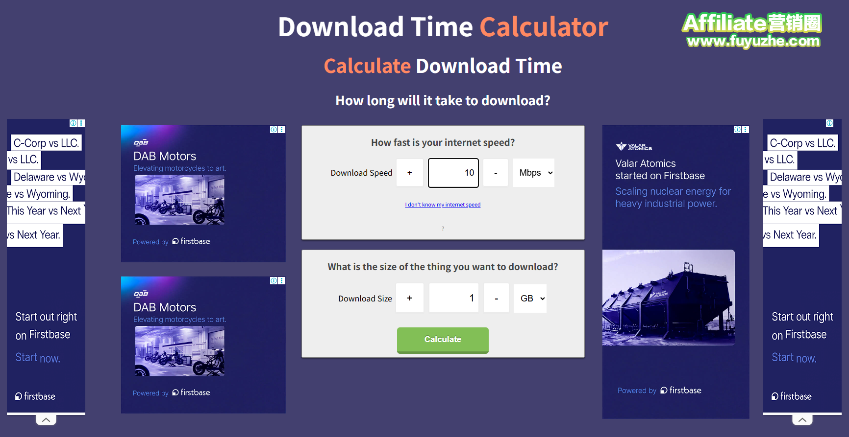 同类网站的还有downloadtimecalculator.com,整个网站8个网页,能简单到令人发指:计算下载一个文件需要多长时间。